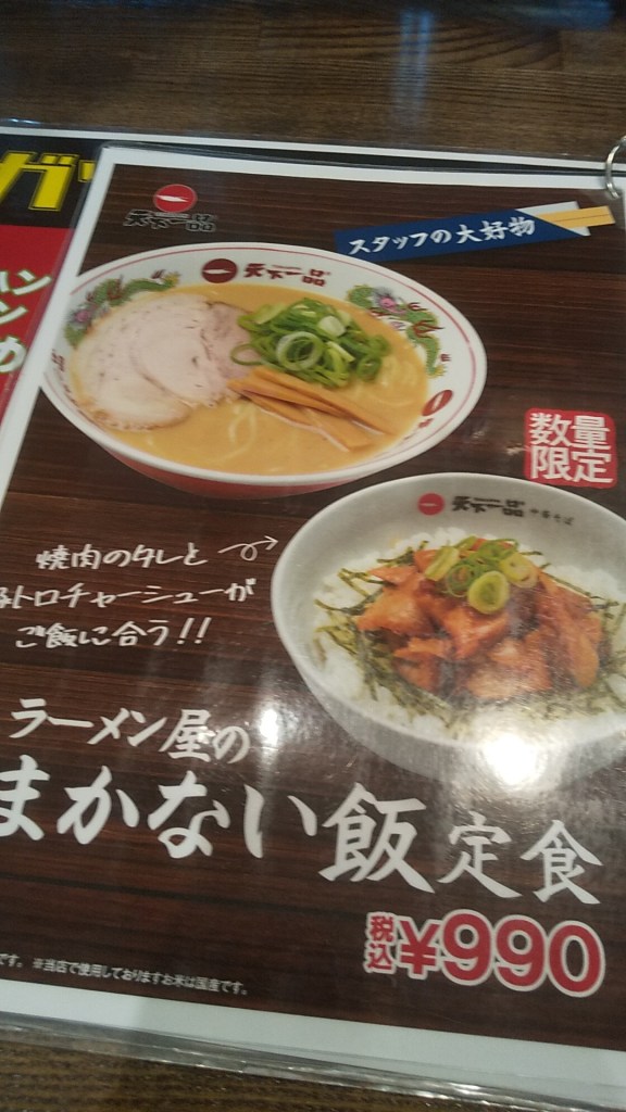 今日はお昼に、天下一品堅田店で「まかない飯定食」を食べました!